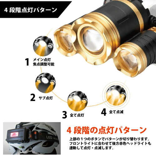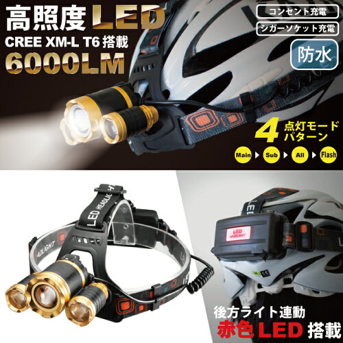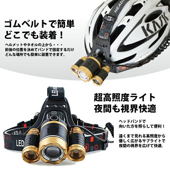 高輝度3LED CREE XM-L T6搭載ヘッドライトフォーカス調整可能スポットライト ヘッドランプ 防水 アウトドア キャンプ 夜釣り 災害時 夜間の自転車ランニング 高輝度Cree XML T6 LED採用!防水高輝度ヘッドギアライト 焦点フォーカス調整可能、充電して長く使える夜間の視界を常に快適に! ・防水構造のアルミ合金材質ケーシングでゴールドカラーが映えるデザインに 調整可能のヘッドバンドで長時間使用でも快適。