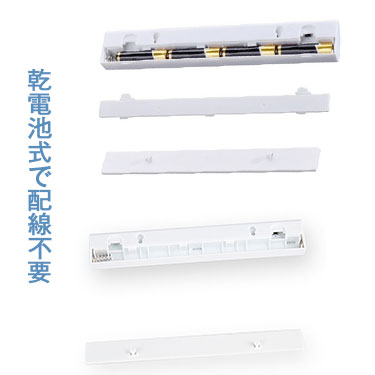 乾電池式なので配線不要、コンセントのない場所にも設置可能です。